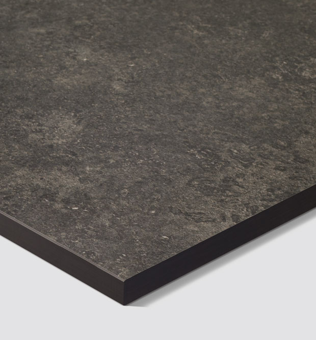 Blaty robocze z laminatu kompaktowego o grubości 12 mm (model 90/1,0) posiadają frezowane wykończenie 1 × 1 mm na krawędziach wzdłużnych górnych i dolnych. Kolory rdzenia: czarny, biały i jasnoszary są idealnie dopasowane do dekorów. Struktura ST76 Mineral Rough Matt tworzy efekt nakrapianej i delikatnie szczotkowanej powierzchni naturalnego kamienia, zapewniając przy tym bardzo przyjemne wrażenia dotykowe.